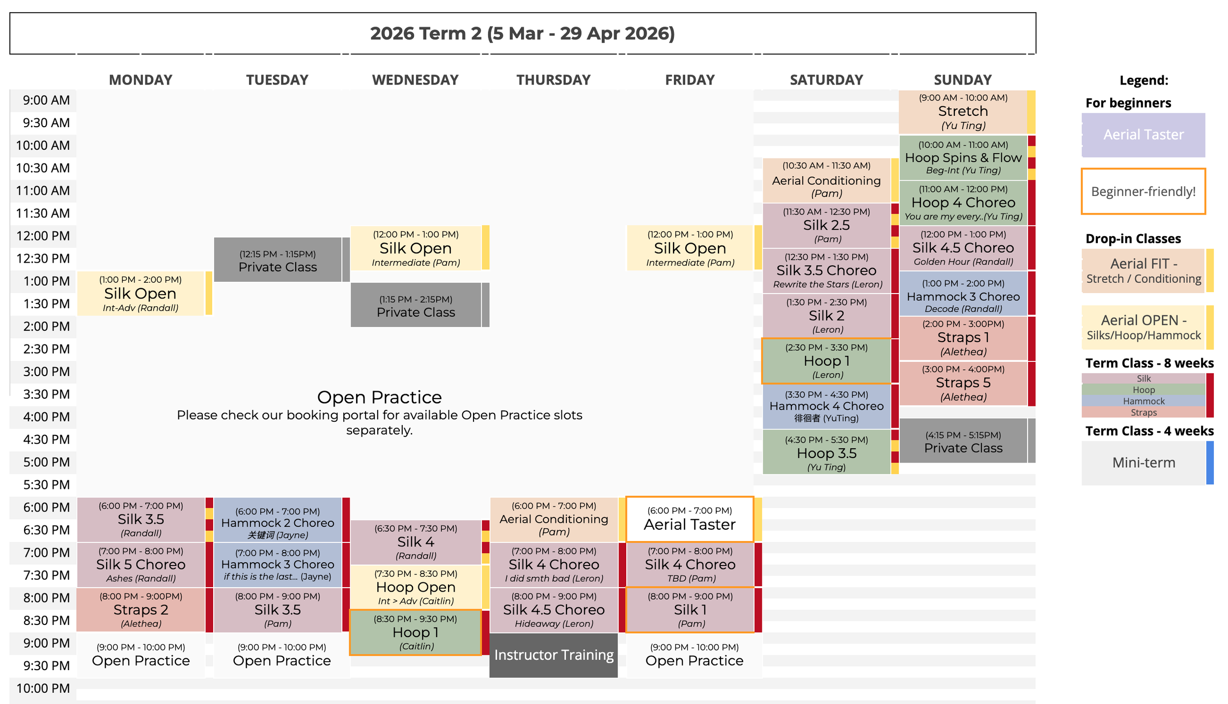 ** Open classes may be subject to change without notice, please check booking portal for the most updated available classes for drop-ins.